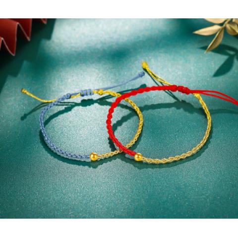 老庙 黄金足金小金珠路路通转运珠编织手绳手链情侣款...