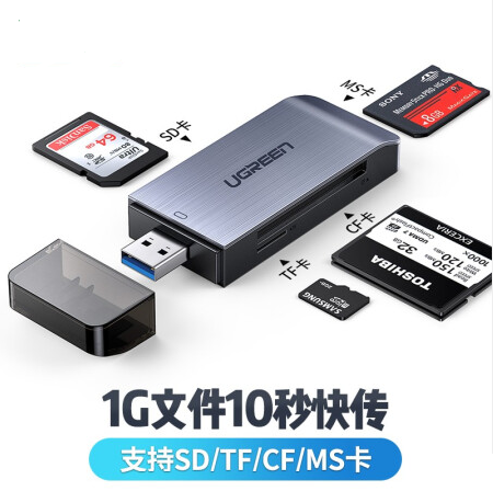 绿联(UGREEN)USB3.0高速读卡器 多功能合一读卡器 支持SD/TF/CF/MS型手机相机内存卡记录仪存储卡
