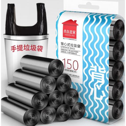 尚岛宜家 背心手提式垃圾袋 150只装 中大号加厚垃圾袋50*65cm*5卷 黑色 家用办公分类垃圾桶袋